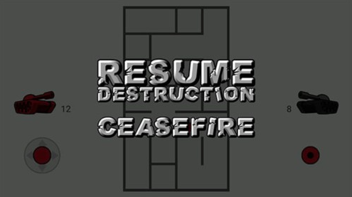4、点击手机的返回按钮即可调出游戏菜单,RESUME DESTRUCTION是返回对局,CEASEFIRE是退出本局。