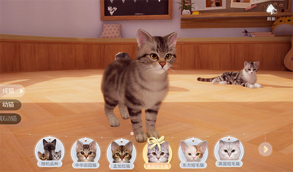 1、进到游戏后,猫舍有中华田园猫、孟加拉猫美国短毛猫等等,选一条你最喜欢的猫。
