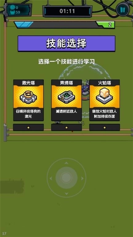 5、接下来,玩家需要凭借灵活的走位来攻击外星人,当等级提升到相应阶段时,就可以挑选一个自己想要的技能来学习。