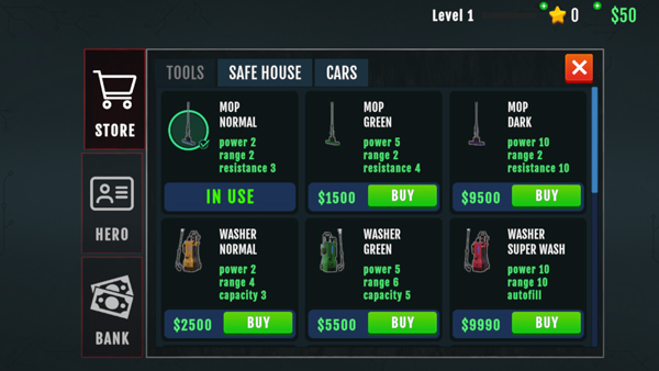 每种工具都非常实用,包括拖把、水桶、水管等,在任务中给你提供极大的帮助。