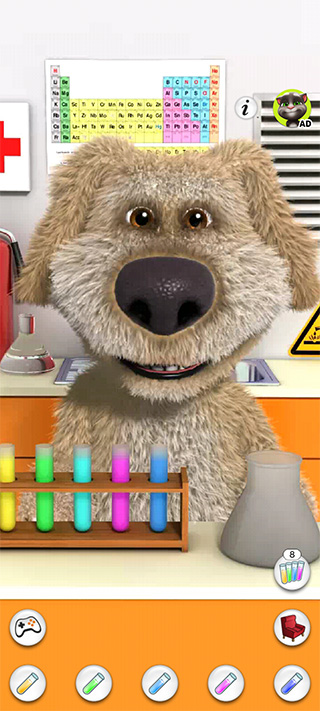 点击会说话的狗狗本中文版是一款非常有趣的经营养成类手游,这款游戏以可爱Q萌的卡通风格和精致唯美的画面吸引玩家,尤其是生动可爱的狗本本角色和逼真的动态模拟,让人一眼就爱上。在玩法上,游戏继承了会说话的汤姆猫系列,玩家可以与狗狗本实时互动交流。戳一下或拍一下狗狗的脸、肚子、脚或手,它会有不同的表情变化,非常有趣。此外,还可以让狗狗制作饮料、看报纸、喂食等,与它共度美好时光。这款游戏玩法丰富,互动性强,非常适合喜欢宠物游戏的玩家。快来下载体验,与狗狗本一起度过欢乐时光吧!