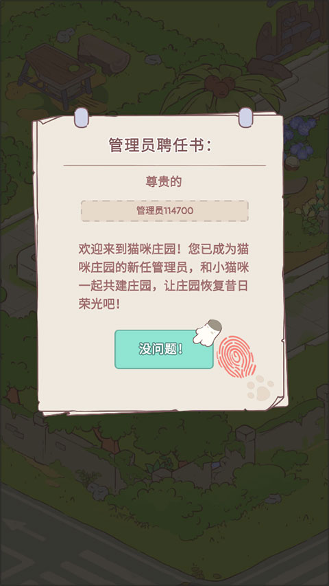 1、下载安装好猫咪豪宅手游,进入游戏,你将成为新的猫咪庄园管理员。