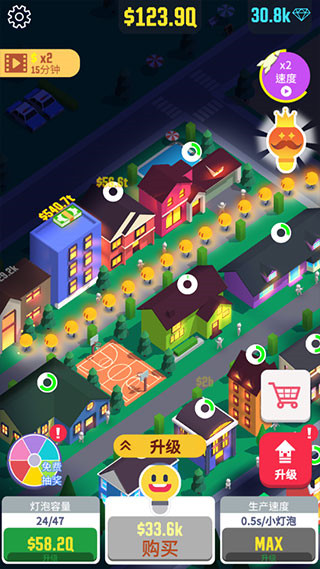 升级灯泡国王,获得更多的能量解锁建筑和街区