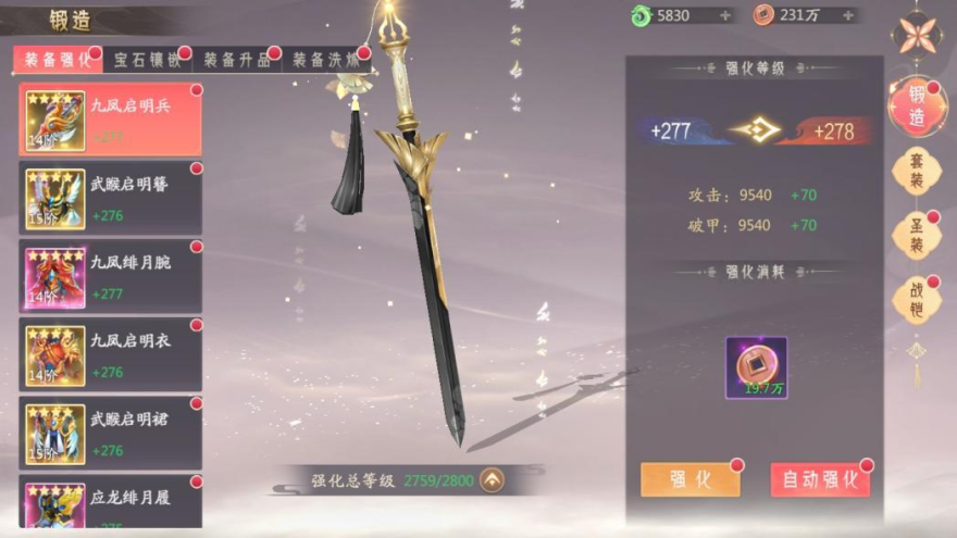 通过消耗铜币可进行装备强化,装备阶数越高,强化等级上限越高。