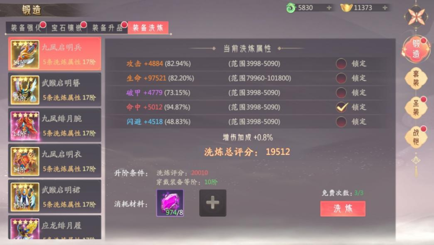 人物达到210级开启装备洗炼,消耗装备洗炼石对装备进行洗炼,获得基础属性加成,每个装备部位的洗炼阶数上限根据装备阶数上限变化,洗炼等阶越高,洗炼属性的上限越高