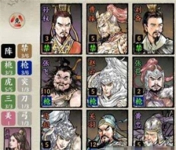 在骑兵里面有刀骑、突骑,在远程里面有弓兵、方士以及谋士,在游戏中的关系就是步兵克制远程兵,而远程兵克制骑兵,骑兵克制步兵,这样的循环关系,大家每一次闯关的时候都可以在卡组的页面看到敌军的信息,探明了敌军的出兵情况之后,大家就可以按照克敌的机制来安排自己的上阵兵种。