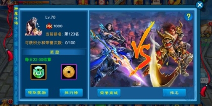 5.玩家无论输赢都会获得荣誉值,但输的一方会扣掉不等量的PK积分(PK积分差距越大扣的越少),PK积分直接影响竞技排行榜排名;