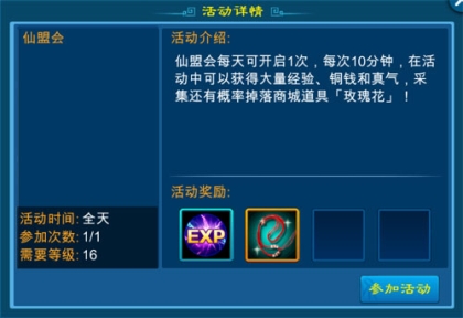 4、仙盟会中可获得大量经验,采集花朵有机会获得【玫瑰花】和【月老的红线】;