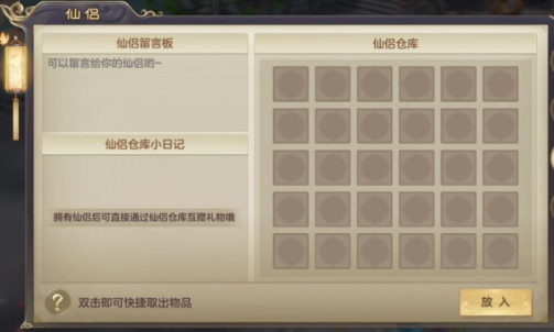 除此之外,仙侣们还有拥有仙侣仓库,可以在仓库里给伴侣留言或者赠送礼物,这个设计是不是很贴心!