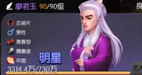 一技能限定古装片,触发之后有概率帮助自己增加各种属性。二技能限定约会场景,如果对手戏演员选择的是和廖君玉有羁绊的角色时,该技能会增加百分之三百的艺人属性。三技能限定廖君玉作为主角,触发后整个剧组和廖君玉自身都能够提升属性。