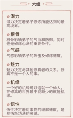历练需要招收四个重点培养的六边形战士。在元婴前最为重要的属性是:根骨和气感。