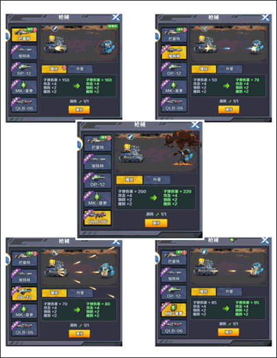 从基础属性来看QLB-06单体爆发最高,适合针对小BOSS,DP-12属于范围伤害,适合击退成群的怪物,而加特林射速最快,综合属性最佳。