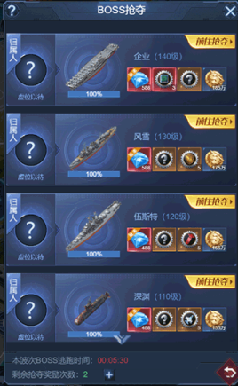 每周三、五12-20点开启,活动开启时,战舰BOSS为一级,击杀当前BOSS会刷新下一等级的BOSS,包括下次活动开启,BOSS将按照上次等级刷出,活动开启当天有10次挑战机会,可通过钻石购买更多机会。该玩法可获得大量碳化钢、红装、金装精华、金币。可用于装备商店购买装备。