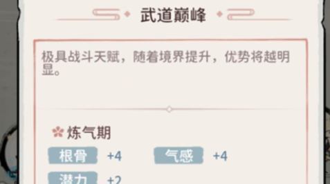 3、这边推荐器道宗师、丹道宗师和武道巅峰这三种选两个,这个三个天赋是开局最强的。