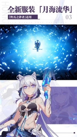 【新服装】「碧海邀游」:终焉之律者适用服装「月海流华」、始源之律者适用服装「浪歌缀梦」、真理之律者适用服装「白滩聆趣」全新登场!