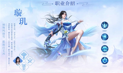 璇玑清丽脱俗,翩若惊鸿;以杖为器,聚气成冰,凝冰化形;技能特征远程群体高伤,寒泉突涌,置对手于鼓掌之间,冰龙九天,决胜千里之外。