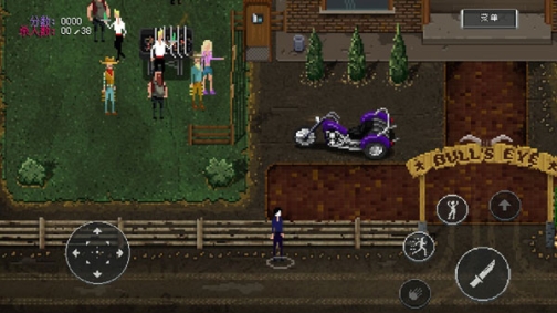 第三关则有点难度,因为场地都较为宽阔,没有许多视野盲区,我会先利用陷阱清除一些人后,在泳池里等候,进来一个砍死一个(这里是很好的地方,哪怕站在泳池旁边依然看不到里面到底发生了什么),时机差不多后寻找落单者慢慢收拾残局。