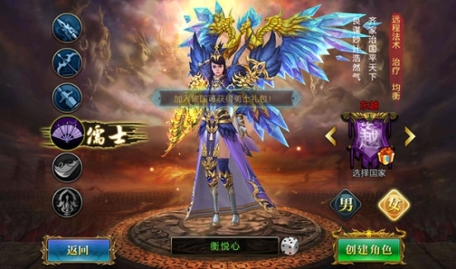 2,职业选择,游戏共6个职业:霸枪(物理近战)、狂刀(物理近战)、神剑(法术近战)、穿云(弓箭、物理远程)、儒士(扇子、法术中程)、道玄(法师、法术远程);各个职业都有自己的特色,一句话总结:混战远程沾光,单挑近战牛逼!
