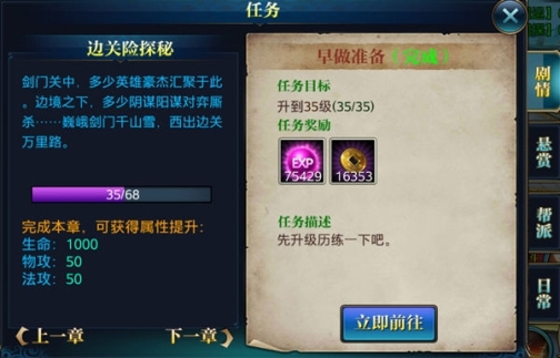 1.首先悬赏任务可以点击人物头像下日常选项找到,通过完成十个悬赏任务(任务基本都是击杀某个数量的一些怪物北凉悍刀行),便可以获得大量经验,钱币以及感悟值,悬赏任务根据难度可以分为1-10星,而根据悬赏任务星级的不同,任务要求击杀的目标数量以及任务完成后的经验奖励和金钱奖励也大不相同,1星和10星的钱币奖励浮动在1000左右,经验奖励浮动也接近1万。