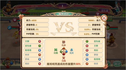 2、激爽战斗体验,创新回合制战斗,多变缘分,属性相克。