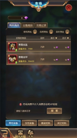 也许你已经有的多出来的装备却是对方所缺失的,反之亦然,所以通过市场我们可以找到更多强大的装备,或许就恰好有你所需要的。所以有事没事多去市场逛逛,卖出自己不必要的换来更强大的装备,互惠互利共同走向巅峰。
