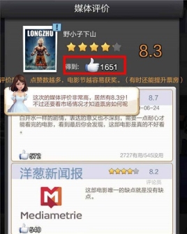 每部影片拍摄完成后,在媒体评价完毕后,都会得到点赞数的奖励。