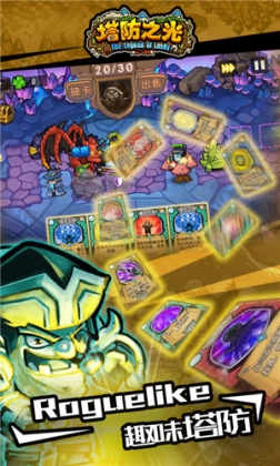 塔防之光属于一款策略塔防类的闯关手机游戏,打了胜仗回来的远征军遭到了攻击,军队都被打散了,领导他们的狮心王也找不着了,这时候你得站出来,成为新的统帅,把这一连串事情背后藏着的实情弄清楚。这游戏是 Q 版卡通的风格,有很多丰富的关卡等着你来挑战,像炎热的火山、茂密的森林,每种关卡都有它独特的玩法,会考验你的战术和策略,为了洛示剑能和平,就算把自己的命搭上也不在乎!