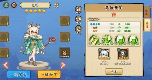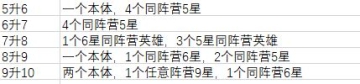 4.卡牌等级介绍,卡牌可以升星,5星升6星是一个质变,但是需要一个本体,因此,建议开局抽到两个相同的强力英雄开局,否则容易陷入卡关,其它升星材料介绍如下图。