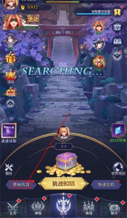 玩家在战场页面点击左下角的“更换阵容”,就可以开始进行阵容的挑战啦!