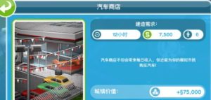 汽车需要在汽车商店购买,我们先要把它建造起来。等到城镇价值到达7万5,并且市民达到6个人就可以创建了。
