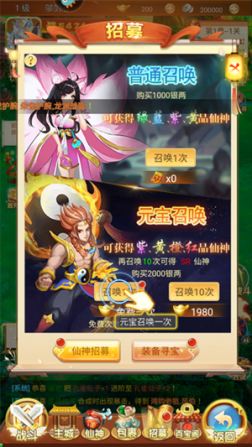 3、点击任务:元宝招募仙神1次,完成之后还可以获得奖励的哦。