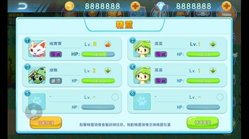 精灵训练师是一款RPG策略养成游戏,要成为最好的精灵训练师,玩家必须在世界各地冒险,邂逅精灵宝贝,吸引它们一起探险,战斗,寻找同伴,尤其是那些稀有的精灵,具有不同的技能,利用好它们的属性作战,制定策略。