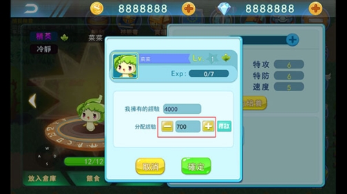 5、选择分配的经验后,点击确定即可给精灵进行升级。