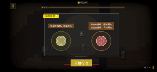 3、进入游戏后,拖动左摇杆移动角色,拖动右遥杆瞄准射击,按住则自动射击