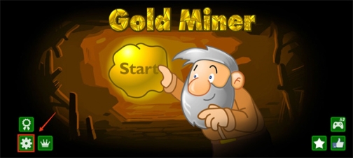 1、下载进入黄金矿工手机版小游戏,点击界面左下角的设置按钮;