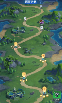 远征之路中所有关卡难度从易到难逐渐递增,主要考验指挥官们的极限战力。通关后可获得远征币、钞票与强化石。远征币可在远征商店兑换装备相关的商品。通过通关时的基地血量,会给与大家1-3星的评价,累计星数还可兑换大量装备相关奖励与招募卡,并且星数越多,每日奖励越丰富。