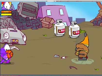 第二关:游乐场。先不管旁边被打的小朋友。多用甩拳或下勾拳,连续用下勾拳可将Boss打上天。随之便变成狂暴型的了。然后要好好地利用垃圾桶和煤气罐。在煤气罐旁边(要离近些以防伤到自己)按轻拳A键可将煤气罐举起,然后再按轻拳A键可将煤气罐或垃圾桶扔出去。唯一的弊处就是跑得慢。