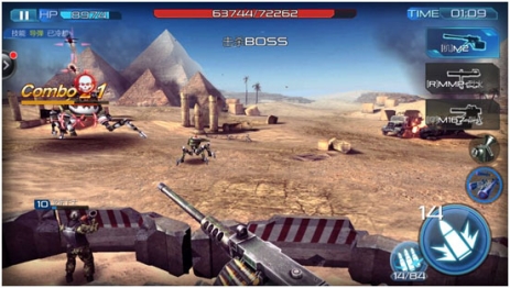 当玩家打到1-6进入关卡后,相对之前1-3的BOSS几乎也没什么难度增加,前期小怪的兵种也不多,扫过几波小怪后,会来一个美女BOSS,玩家只需要一顿扫射并且弱点出现后不停连续打击弱点即可,几乎不费吹灰之力就可通关。