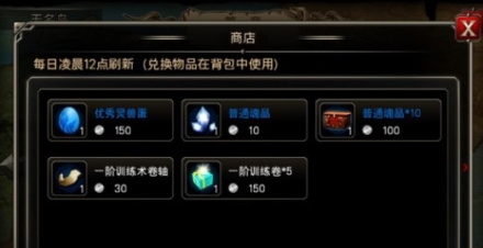 宠物商店中还能购买到魂晶和训练卷这两种强化宠物属性的道具。魂晶可以用于宠物培养,增加宠物的4项基本属性的成长值,包括力量、智力、绝技和生命四项。而训练术用于增加人物训练宠物的技巧,是人物的技巧,与宠物具体携带的哪一只无关。训练术同样分为四种,分别是勇气、灵智、凶悍和野性,可以对宠物的属性进行增幅,对主人进行额外的属性附加。