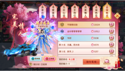 2.结算时,排行前10名的玩家可以获得排名奖励,男女第一名的玩家还可以获得唯一的坐骑外形——豪华跑车。
