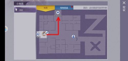 4、在研究所点击小地图,就能看到右边前往村庄的按钮了。