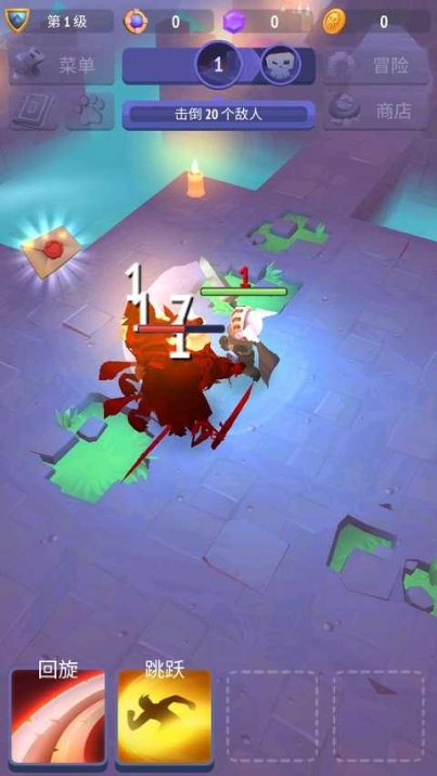 新玩家刚进入这款游戏中就会拥有两个技能,回旋与跳跃。