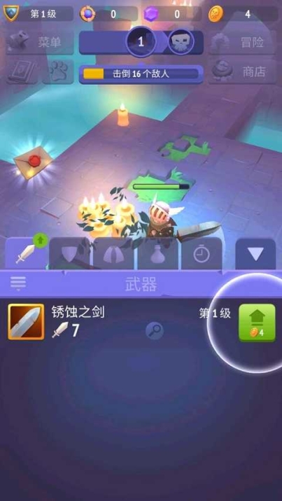 操作方式特别容易,基本上用不着咱们过多插手,由于骑士能够自行攻击,能够自己去寻找和攻击敌人,咱们要做的只是点击来释放技能,对武器装备进行升级。