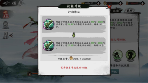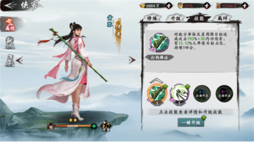 当侠客等级提升到足够高的时候,要想提升一个侠客的战斗力,最简单就是技能等级,增加技能伤害。但技能升级却很费铜币,比如黄蓉的四个技能,从1级升到100级,大约需要来2600w铜币。