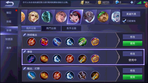 主要用下图第一套,开局小蓝鞋配合二技能回血,基本上可以线上永动机了,其他围绕着输出吸血和穿透上出。