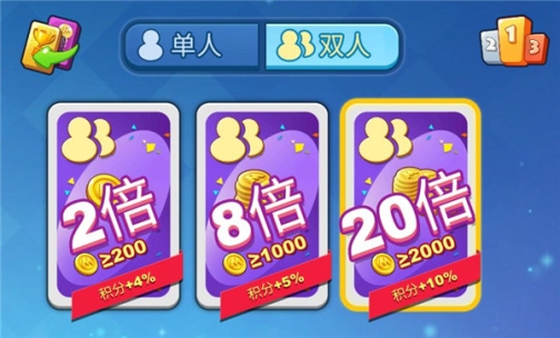 单人、双人、欢乐、经典、2倍、4倍、8倍、20倍等等都是可以选择的模式。