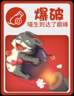 第一眼看到“爆破”的时候,我就想到了另外一张牌:攻击。它们都采用了色彩比较强烈的红色,也许在官方设计人员眼中,红色正是代表了“激烈争斗”的意思,当然,也有不少粉丝猜出了这层含义,所以在“炸弹猫全新卡牌猜想”活动中得到了完美答案。