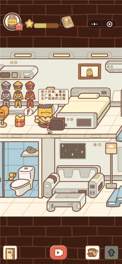 游戏大厅的上方是楼道。点击楼道可以进入住客房间界面,老板可以随时与住客们聊天、赠送服装、礼物等,也可以随时观察每位住客的状态是否良好心情如何。