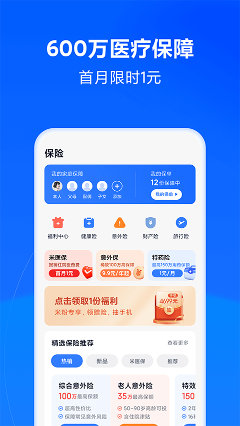 健康险、意外险、财产险、旅行险、手机碎屏险、手机延保等各类生活保障