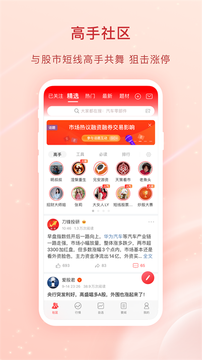 1、高手直播:操盘手和大V盘中在线直播,为您指点迷津、答疑解惑;